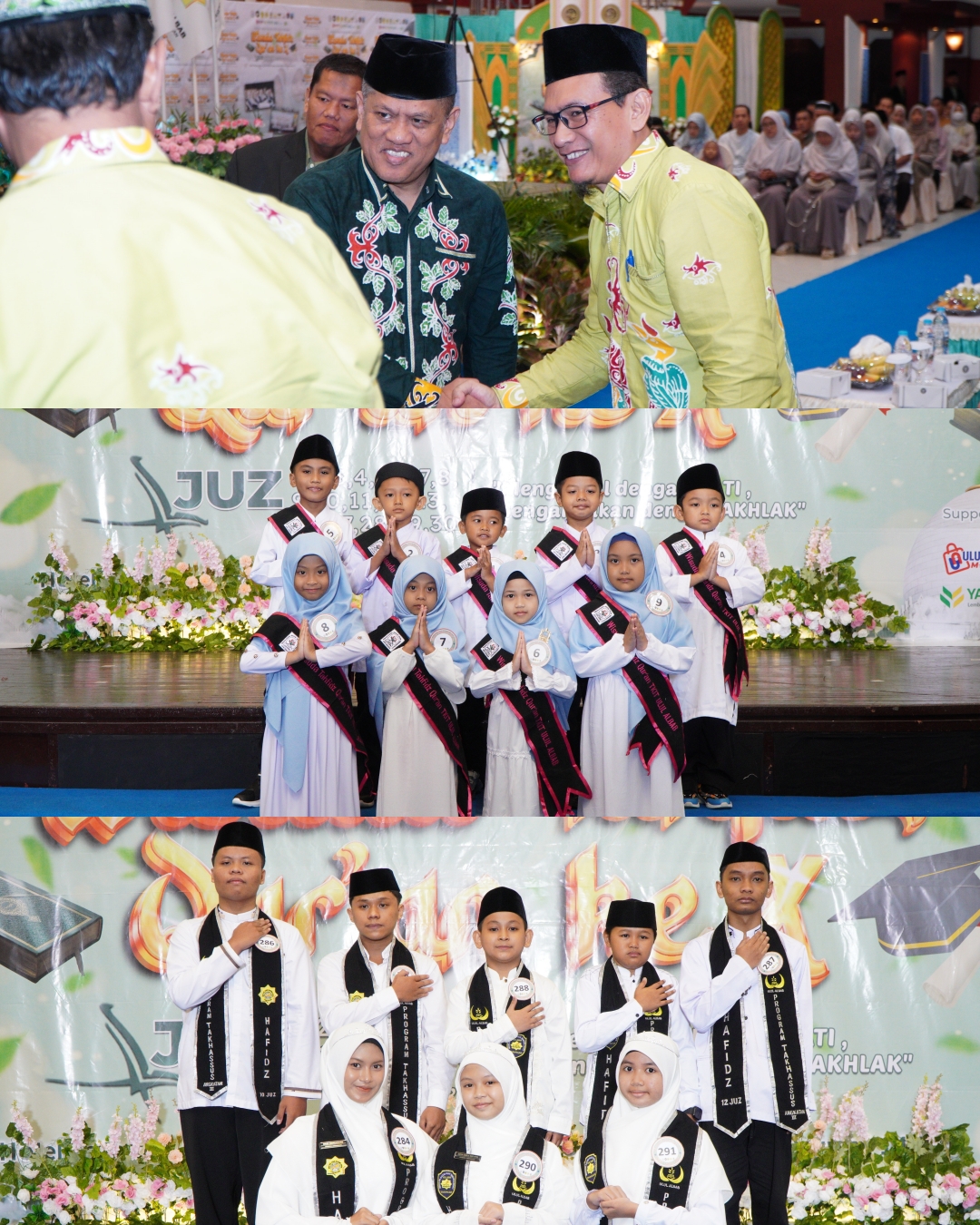Di balik capaian para wisudawan, ada peran besar yang tidak terlihat di panggung. Ada orang tua yang tak pernah lelah mendoakan. Ada asatidz dan asatidzah yang sabar membimbing, mengulang, dan menguatkan. Ada lingkungan yang terus menjaga semangat agar tetap istiqamah di jalan Al-Qur’an.